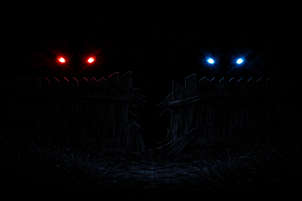 Those two evils – good vs. bad … this was more of a spiritual or inevitable counter !! The Red Wolf feels like impulse and heat, while the Grey Wolf feels like calculation and inevitability. Having them find the hole in the fence together makes them feel like a unified force you can no longer ignore.