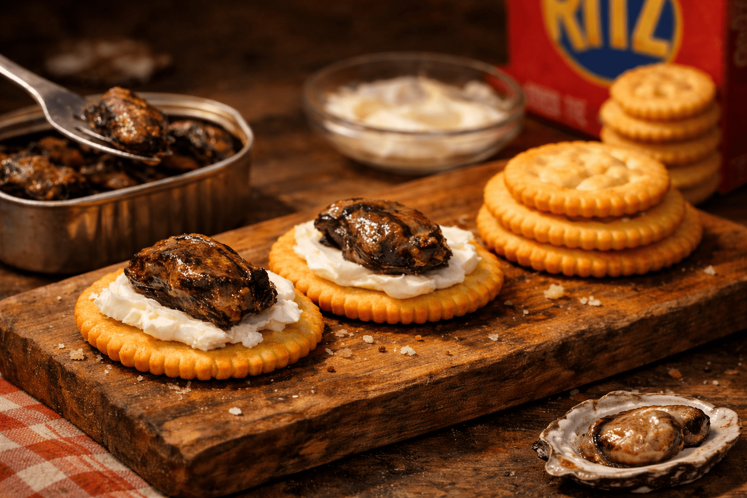 Ghetto S’mores… smoked oysters… cream cheese… Ritz cracker… Trust me… 🔥