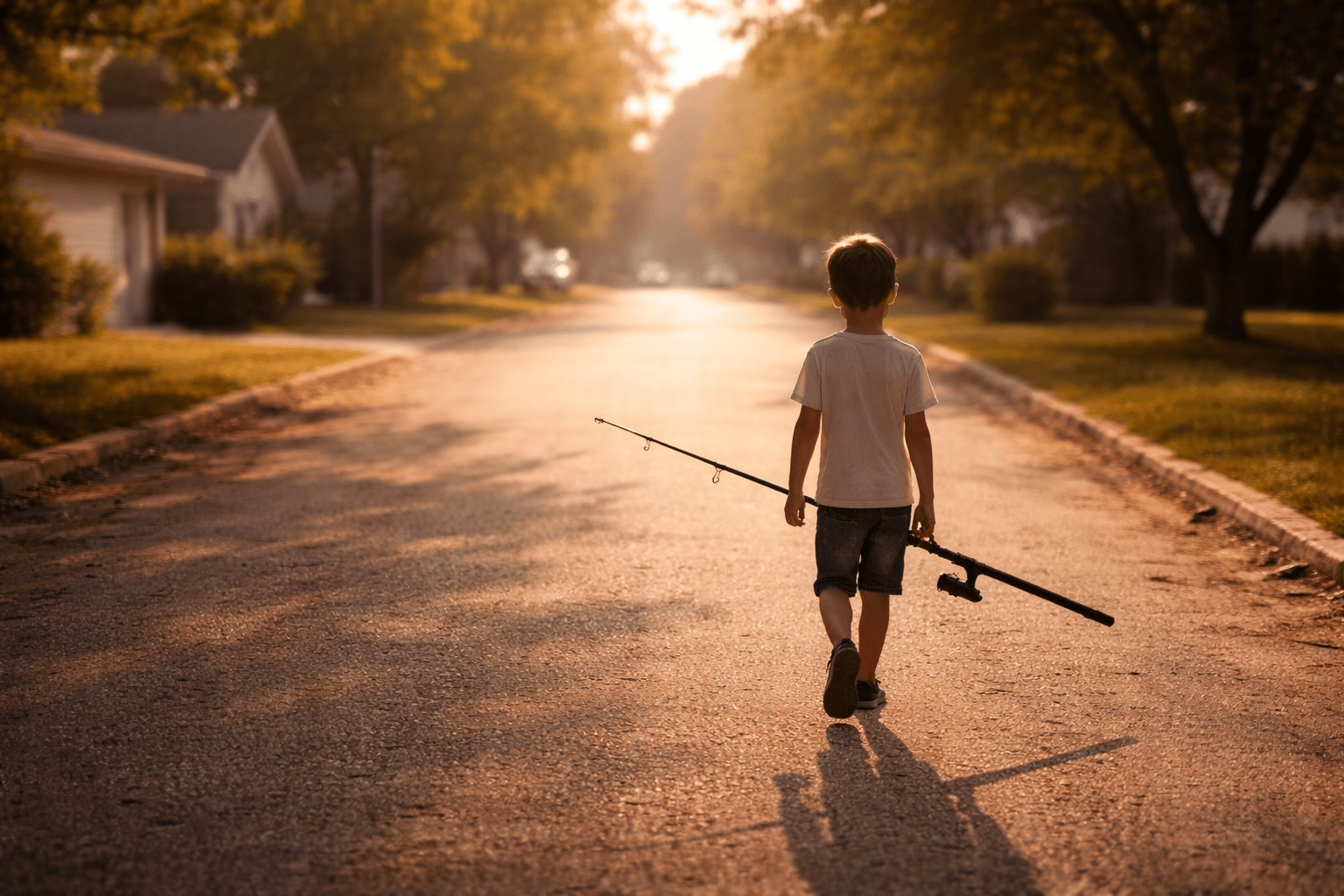 with a fishing pole bigger than his arms…