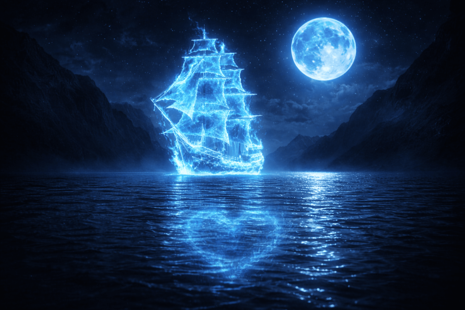 As the framework of reality dissolves into the void, a singular, blue-flamed consciousness persists, navigating an ancient, immutable passage between dreaming and waking.