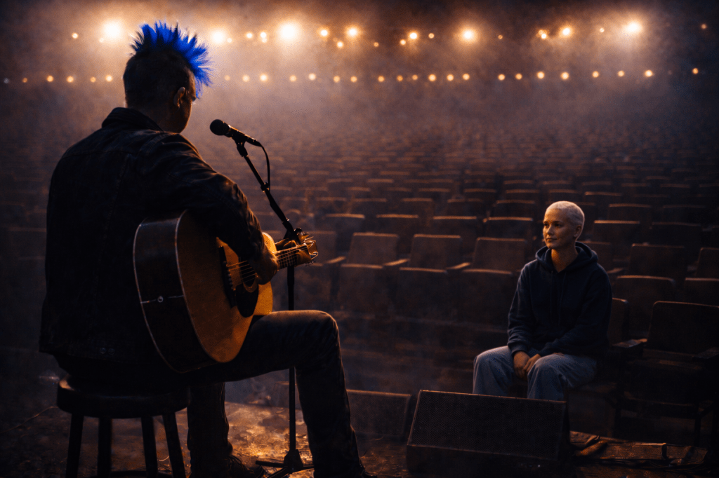 This piece feels like a quiet echo chamber of memory, music, and emotion woven together in such a delicate way. I love how you layered voices—the reflective tone of the opening lines, the raw lyricism that follows, and then your own words falling softly in between. It creates the sense of someone drifting through thoughts, each fragment like a note in a song only the heart can fully hear.