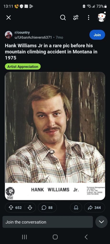 In 1975.. Hank Williams Jr.. fell more than five hundred feet down a mountain in Montana — an accident that nearly took his life and forever changed his voice.. his sound.. and his direction…
